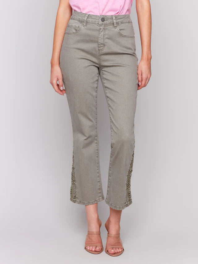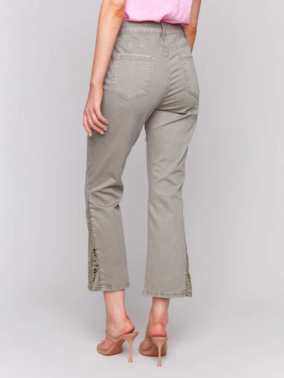 Cactus Lace Cut Side Bootcut Twill Pants - Celadon
