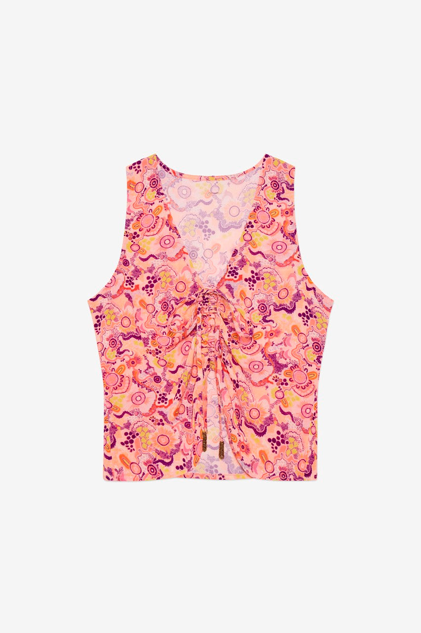 Bring a pop of charm to your wardrobe with this pink printed top! Featuring a flattering v-neckline and a central ruched detail, this top hugs your curves in all the right ways. The floral print adds the perfect whimsical touch, making it a fun and feminine addition to your closet.