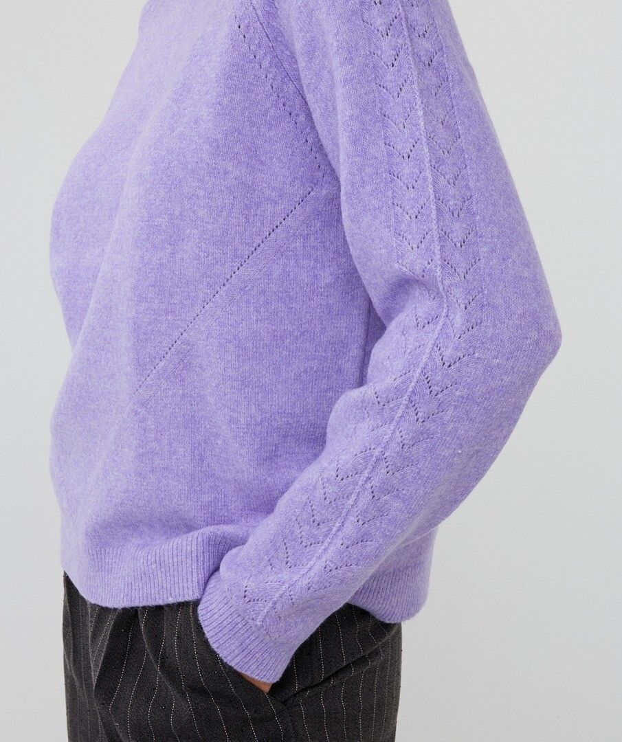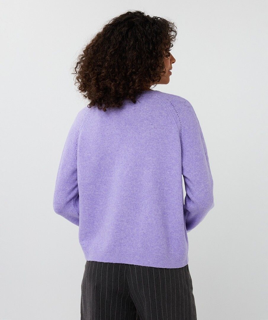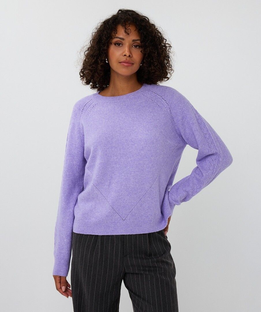Wrap yourself in the cozy charm of the Raglan Ajour Sweater in Light Violet. Its delicate open-knit design adds a touch of whimsy, while the soft violet hue brightens any outfit. Perfect for layering on breezy days, this sweater brings a playful pop of color and comfort to your wardrobe.