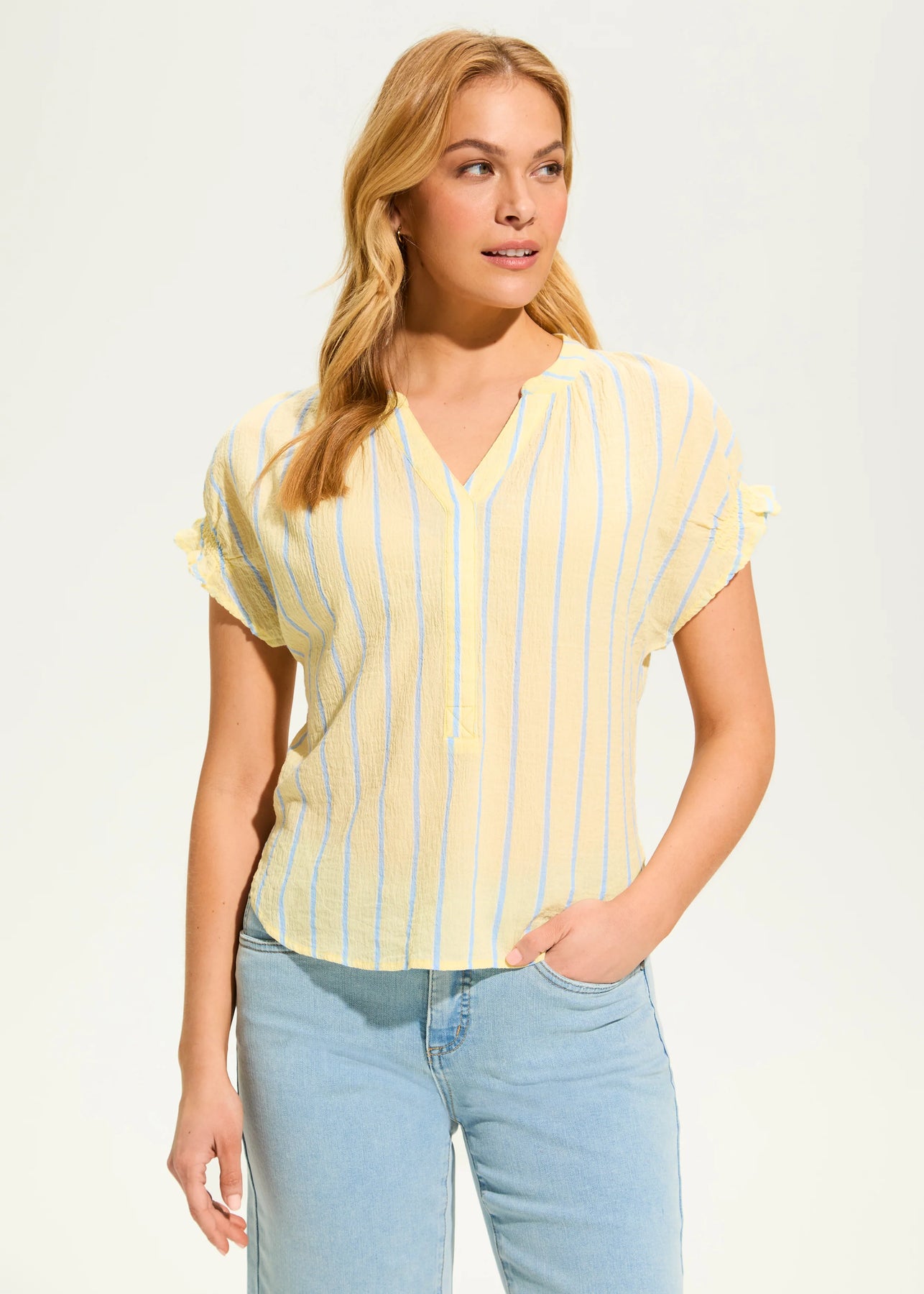 Short Sleeve Stripe Top, Lemonade Stripe