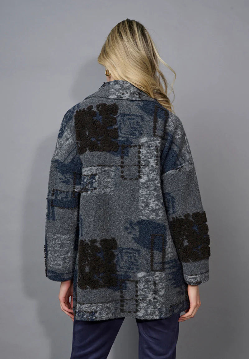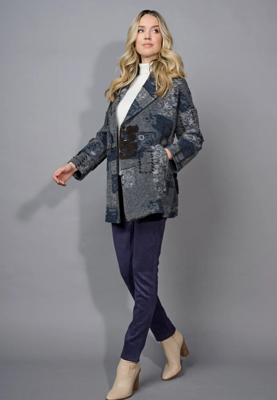 Textured Lapel Collar Jacket - Blue/Grey
