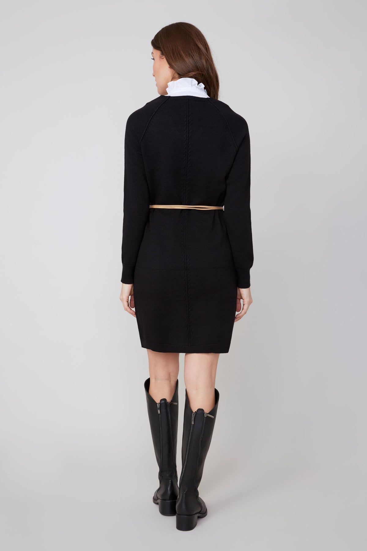 Meet your new go-to dress: the V-Neck Long Sleeve Jersey Dress in classic black. Crafted with soft, stretchy fabric, it moves with you all day, keeping comfort and style perfectly in sync. Practical pockets add a touch of convenience, while the sleek V-neck and long sleeves make it a versatile piece you can dress up or down. Pair it with boots, sneakers, or layered with a cozy cardigan—the perfect everyday dress that feels as good as it looks.