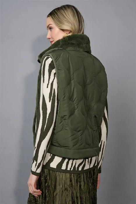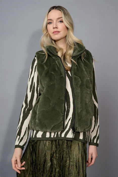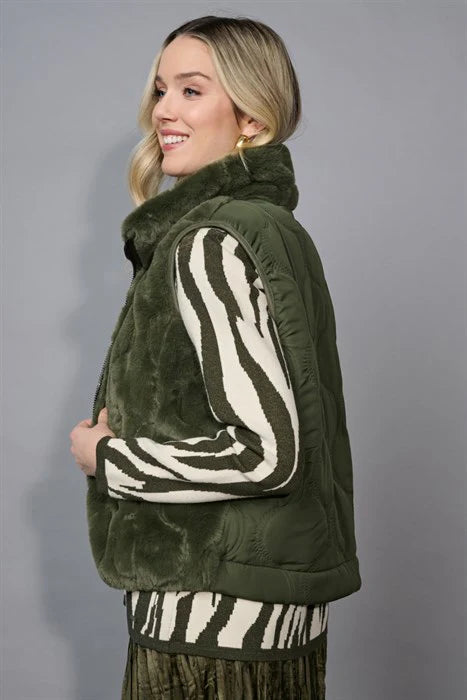 Stay cozy and cute all season long in this plush faux fur zip-front vest in Capers. With its soft, puffer-style fit, it’s perfect for layering over your favorite sweaters and flannels. The cozy texture adds warmth, while the fun color brings a playful pop to any chilly-day outfit. Whether you’re heading out for a fall stroll or running weekend errands, this vest keeps you snug and stylish all the way.